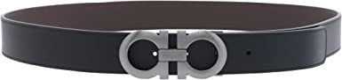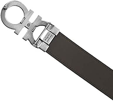 Salvatore Ferragamo Men's Gunmetal Gancini Logo Buckle Belt Reversible Black Brown